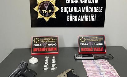 Uyuşturucu madde imal ve ticareti yapıldığı tespit edilen bir adrese yapılan baskında, gizlenmiş 30 gram sentetik uyuşturucu, 7 bin 200 lira, 2 ruhsatsız tabanca ve 2 şarjör ele geçirildi.