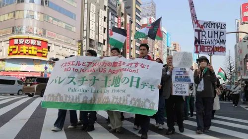 Tokyo'da 30 Mart Toprak Günü kapsamında binden fazla kişi Gazze'ye destek için 'İsrail ve ABD saldırganlığına hayır' yürüyüşü düzenledi.