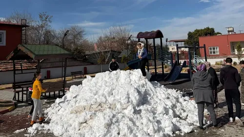 Toprakkale Belediyesi, Karataş Mahallesi Kale Park'a bir kamyon kar getirerek çocuklara yarıyıl tatilinde kar sürprizi yaşattı; aileler ve mahalle sakinleri memnun kaldı.