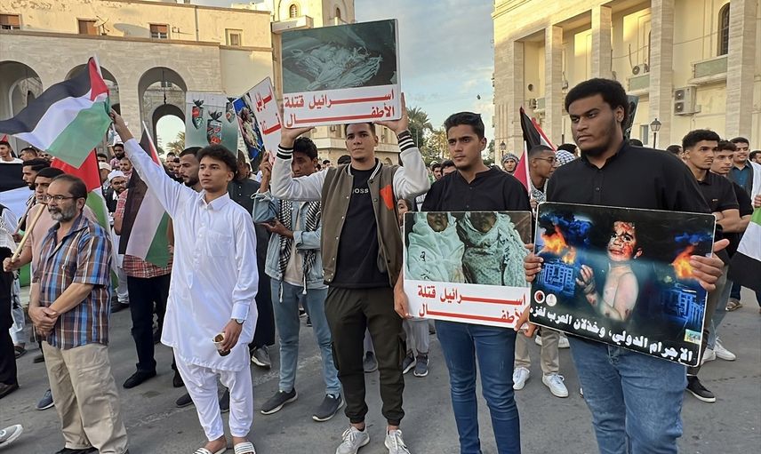 Libya’nın başkenti Trablus’un sembolik meydanlarından Cezayir Meydanı’ında Gazze’deki Filistinlilere destek gösterisi yapıldı. Trablus’taki gençlik sivil toplum kuruluşlarının çağrısıyla, ikindi namazının ardından Filistin ve Libya bayrakları taşıyan yüzlerce Libyalı Cezayir Meydanı’nda toplandı.