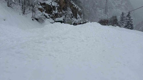 Trabzon-Bayburt karayolu Tilkibeli mevkiinde meydana gelen çığ sonucu yol kapandı; Karayolları ekipleri müdahale ediyor, bazı araçlar her iki yakada mahsur kaldı.