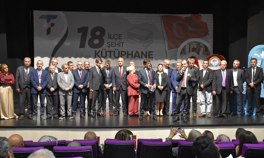 Trabzon'un ilçelerinde şehitlerin isimlerinin verildiği 18 okuldaki kütüphanenin toplu açılışı yapıldı. Trabzonlular Federasyonunca "Her İlçeye Bir Kütüphane" sloganıyla İl Milli Eğitim Müdürlüğü işbirliğince yaklaşık 3 ay önce yapımına başlanan 18 kütüphanenin açılışı için Hamamizade İhsan Bey Kültür Merkezi'nde tören düzenlendi. Büyükşehir Belediye Başkanvekili Ahmet Yüksel Gülay programda konuşma yaptı.