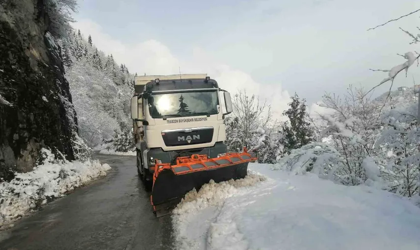 Trabzon'un yüksek kesimlerinde etkili olan kar yağışı sonucu toplam 34 mahalle yolu ulaşıma kapandı. Trabzon Büyükşehir Belediyesi ekipleri, ulaşımda aksama yaşanmaması ve vatandaşların mağduriyetinin önlenmesi amacıyla aralıksız karla mücadele çalışmaları yürütüyor.