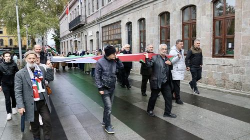 Trabzon'da Filistin İçin Ses Verdiler Trabzon'un Ortahisar ilçesinde, Özgür Aksa Platformu tarafından Filistin'e destek amaçlı bir yürüyüş düzenlendi. İskenderpaşa Camisi önünde bir araya gelen katılımcılar, Filistin ve Türk bayrakları taşıyarak Kahramanmaraş Caddesi'nde bulunan Ziraat Bankası önüne kadar yürüdü. Gazze'deki Soykırıma…