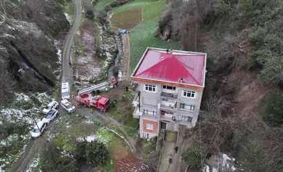 Trabzon'da heyelanın binanın girişini kapatması nedeniyle evlerinde mahsur kalan 3'ü çocuk 6 kişi itfaiye ekiplerince kurtarıldı.