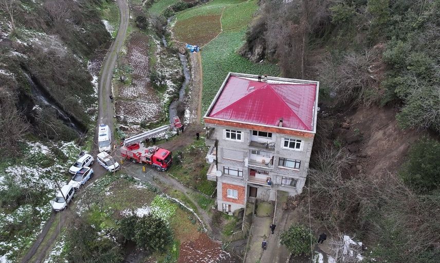 AFAD ve belediye ekiplerinin bölgedeki çalışmaları devam ederken, heyelan anının binanın güvenlik kamerası tarafından kaydedildiği öğrenildi.