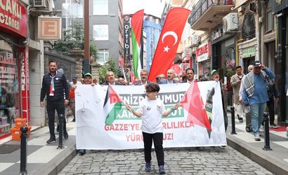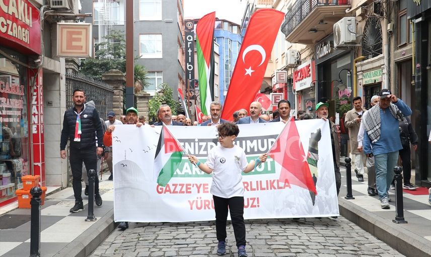 Trabzon'da İsrail ablukasını kırmak ve Gazze'ye insani yardım ulaştırmak amacıyla yola çıkan Küresel Sumud Filosu'na destek için yürüyüş yapıldı.