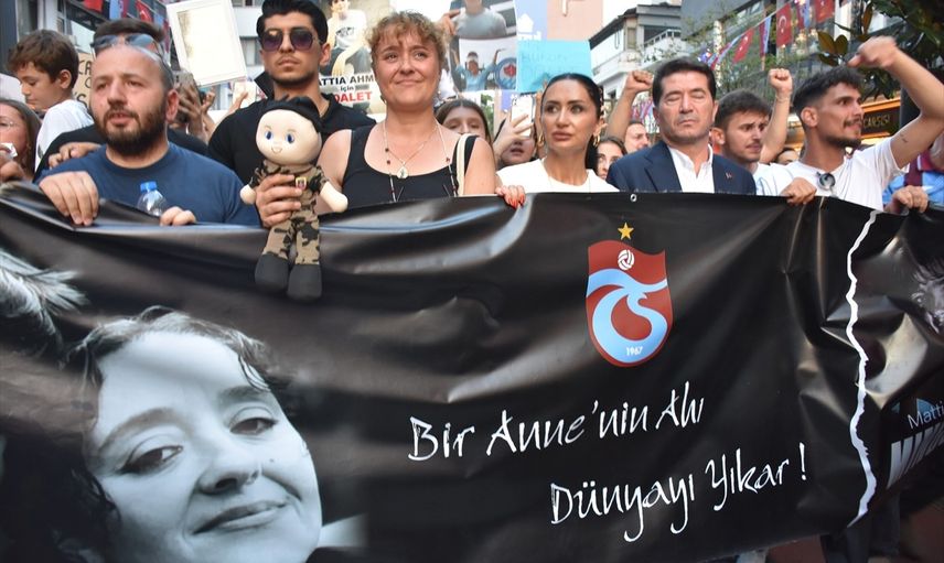 İstanbul'da öldürülen Mattia Ahmet Minguzzi için Trabzon'da yürüyüş organize edildi. Atatürk Anıtı önünde bir araya gelen vatandaşlar, Minguzzi’nin annesi Yasemin Akıncılar Minguzzi (solda) ve babası Andrea Minguzzi'ye (sağda) destek verdi. Ellerinde dövizlerle Kahramanmaraş Caddesi'nden Uzun Sokak'a kadar yürüyen grup, çeşitli sloganlar attı.