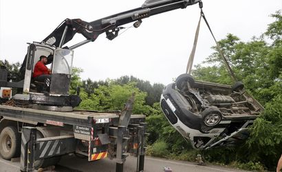 Trabzon'da, park halinde bulunan bir minibüsün yolcu alma anında kayarak şarampole devrilmesi sonucu 5 kişi yaralandı.