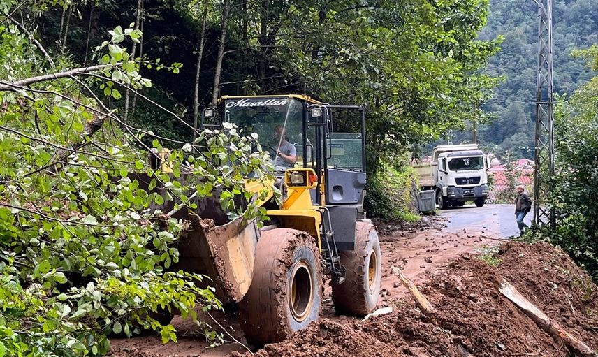 Trabzon'da etkili yağışın ardından bazı ilçelerde toprak kaymaları oluştu.