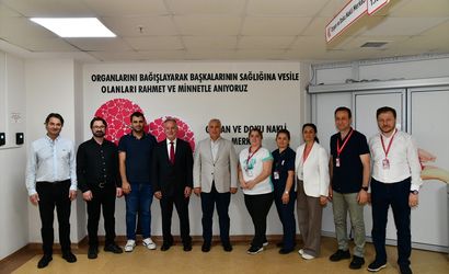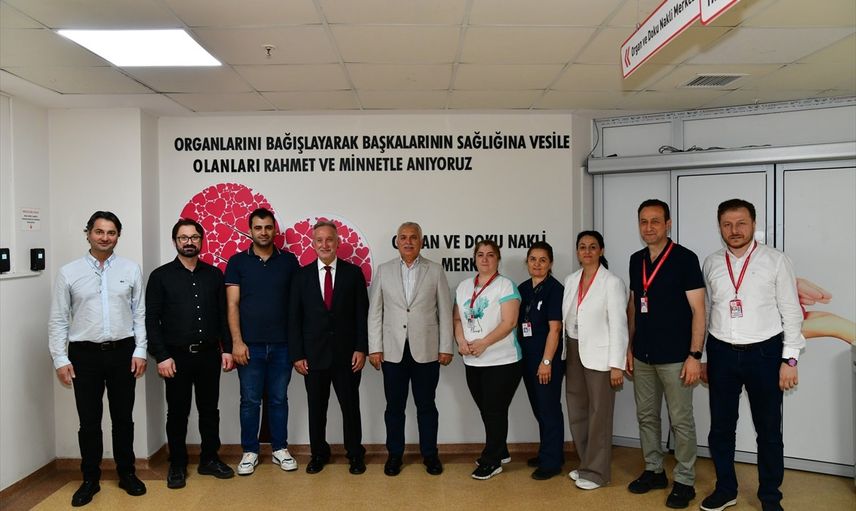 Trabzon Kanuni Eğitim ve Araştırma Hastanesi Organ ve Doku Nakli Merkezi'nde ilk organ nakli gerçekleştirildi. Vali Aziz Yıldırım (sol 5), Organ ve Doku Nakli Merkezi'ni ziyaret etti.