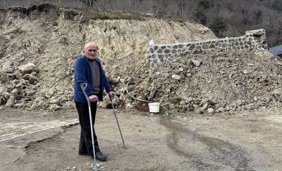 Trabzon'un Arsin ilçesinde, istinat duvarının çökmesine ve bir ahırda hasar oluşmasına yol açan heyelan, havadan görüntülendi. İlgili olay, Çubuklu Mahallesi'nde yaklaşık bir hafta önce meydana geldi.