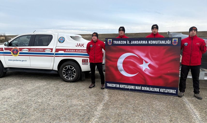 Trabzon İl Jandarma Komutanlığı Sualtı Arama Kurtarma (SAK) timleri, Trabzon'un kurtuluşunun 107'nci yıl dönümünü, Karadeniz'de dalış yapıp su altında Türk bayrağı açarak kutladı.