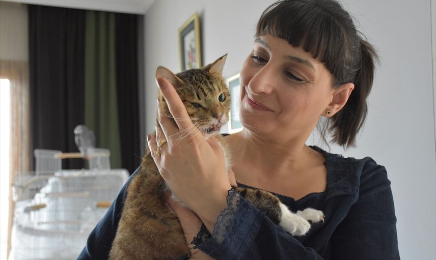 Trabzon'da yaşayan Nilay Musacalı ve ailesi, çeşitli nedenlerle terk edilen su kaplumbağası, papağan ve biri görme engelli iki kediyle evini paylaşıyor.