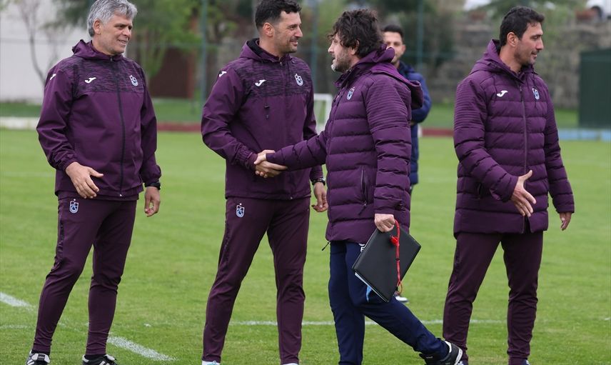 Trabzonspor'un teknik heyet ve oyuncuları, UEFA Gençlik Ligi çeyrek finalinde Inter'i 1-0 yenerek yarı finale yükselen 19 yaş altı bordo-mavili takımın antrenmanını ziyaret etti. Ziyarette teknik direktör Fatih Tekke (ortada) yer aldı.