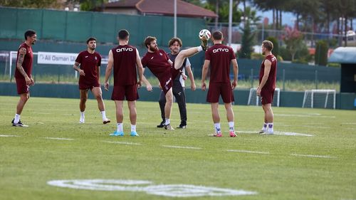 Trabzonspor, 18 Ağustos'taki Kasımpaşa maçı öncesi Mehmet Ali Yılmaz Tesisleri'nde antrenmana devam etti; Nwakaeme, Onuachu ve Zubkov çalışmada yer almadı.