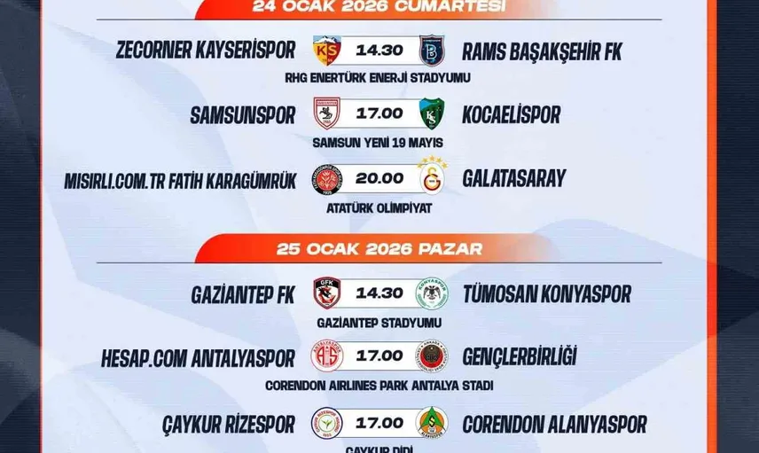 Trendyol Süper Lig'de 18. ve 19. hafta programı