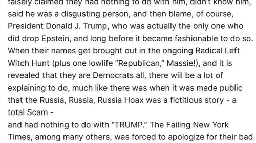 Trump, Epstein belgeleri tartışmalarını 'radikal solun cadı avı' olarak nitelendirerek, Demokratların birçok arkadaşının itibarının zarar görebileceğini söyledi.