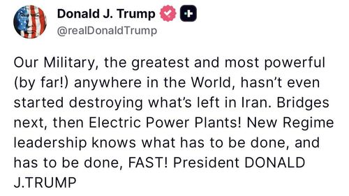 ABD Başkanı Trump, İran'a derhal anlaşma çağrısı yaparak askeri seçeneklere dikkat çekti; köprüler ve elektrik santrallerinin hedef alınabileceğini belirtti.