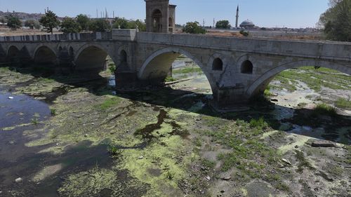Edirne'nin Tunca Nehri, kuraklık nedeniyle su seviyesinin kritik düzeye düşmesiyle akışın durma noktasına geldi.