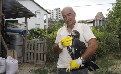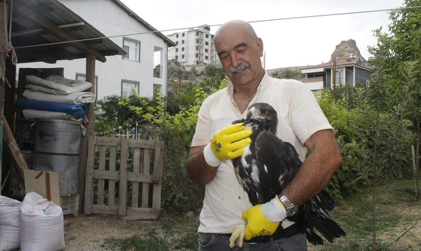 Tunceli'nin Çemişgezek ilçesindeki Tepebaşı Mahallesi'nde, bitkin halde bulunan bir kaya kartalı, koruma altına alındı.