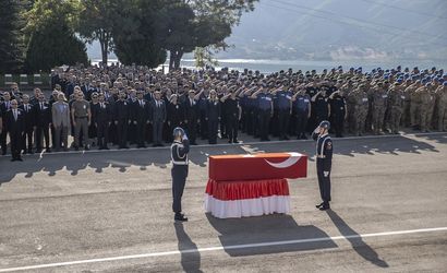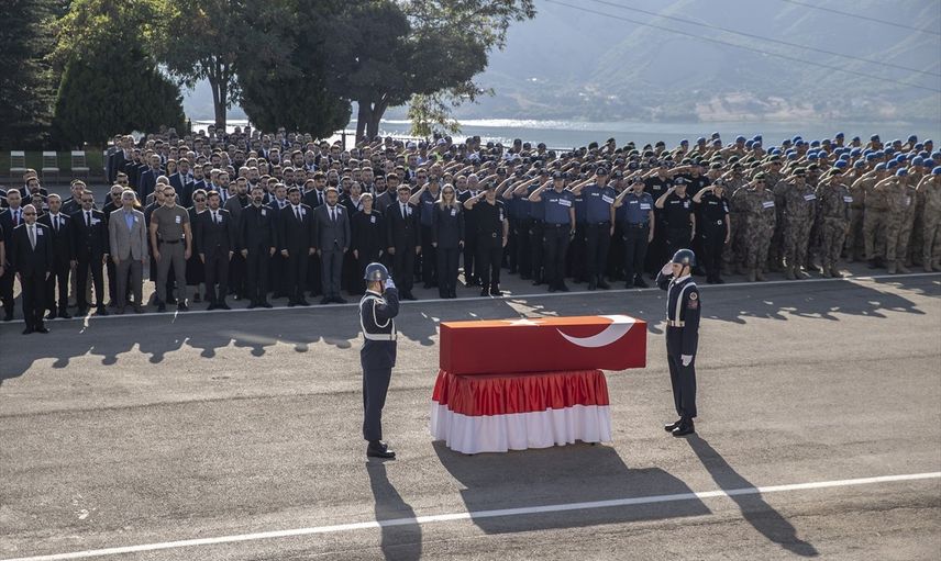 Tunceli İl Jandarma Komutanlığı tesislerinde düzenlenen törende, şehit olan Uzman Çavuş Mehmet Aykanat, Uzman Çavuş Orhan Burak Büyükçaylı ve Uzman Onbaşı Doğan Kızılateş’in Türk bayrağına sarılı naaşları kataflka konularak saygı gösterildi.