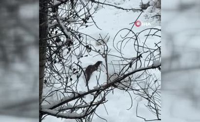 Yoğun kar örtüsünde kaydedilen görüntüler yerel bir vatandaş tarafından alındı
