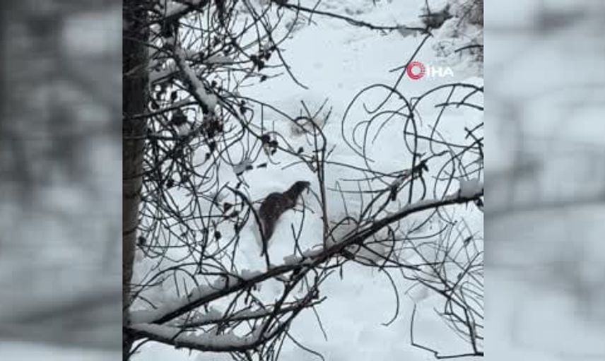 Tunceli Pülümür Vadisi'nde nadir bir gözlem: Su samuru karlar arasında