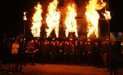 Garın önünde oluşturulan 'Kars' yazısının meşale ile yakılmasıyla karşılamanın sonuna gelindi. Ancak, Balıkesir'in merkez Karesi ilçesindeki patlayıcı üretilen mühimmat fabrikasında meydana gelen patlama nedeniyle karşılamadaki müzik ve gösteriler iptal edildi.