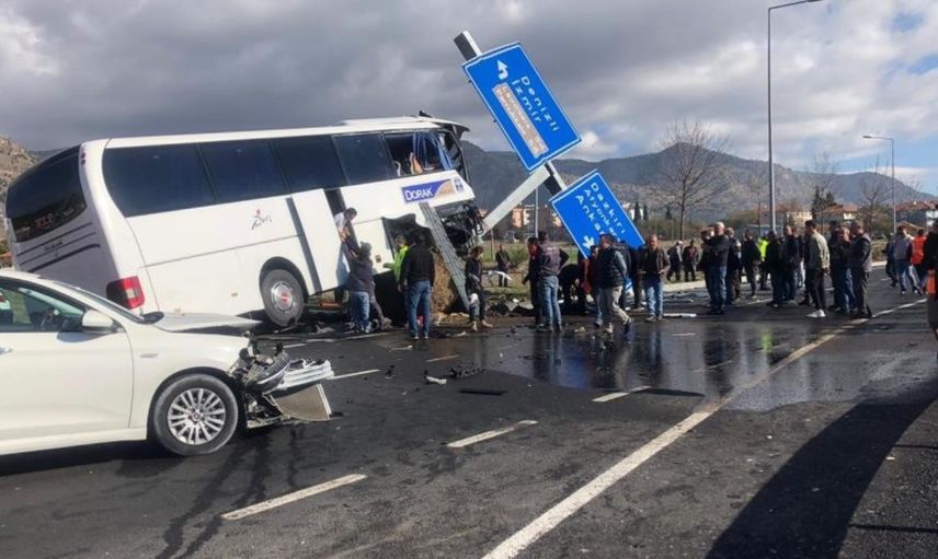 Denizli'nin Çardak ilçesinde feci kaza meydana geldi. Taylandlı turist kafilesini taşıyan otobüs ile otomobille çarpıştı. Kazada 30 kişi yaralandı.