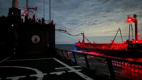 Türk Deniz Görev Grubu, Libya açıklarında TCG Gaziantep ve TCG Gelibolu fırkateynleri ile TCG Akar akaryakıt gemileri ile eğitim yaptı.