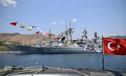 Deniz Kuvvetleri Komutanı Oramiral Ercüment Tatlıoğlu, Muğla'nın Marmaris ilçesindeki Aksaz Deniz Üssü'nde Katar'a konuşlanacak TCG Kuşadası ile TCG Kumkale gemilerinin görevlendirilme törenine katıldı.