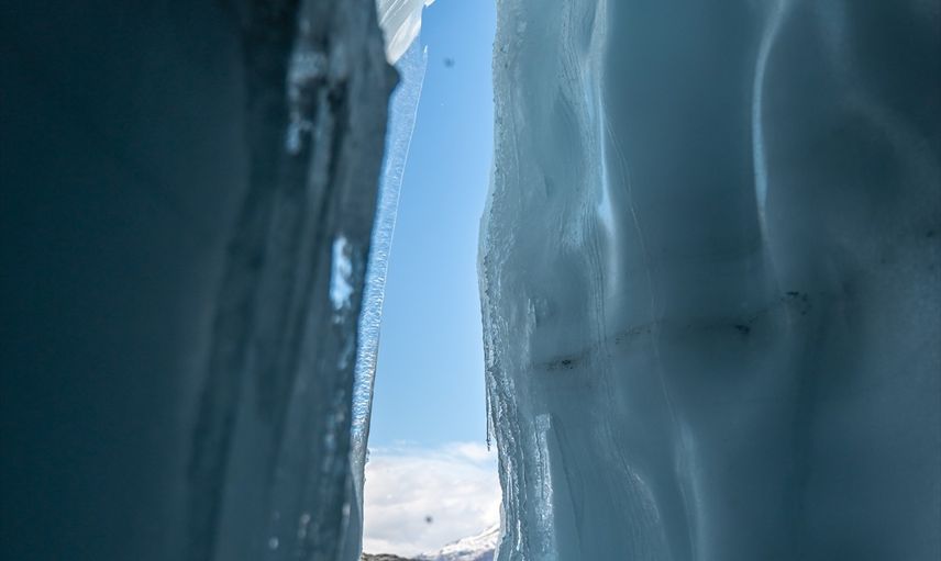 Buzulun derinliklerinde zamanla oluşan bu doğal yapılar, ziyaretçilere "başka bir gezegendeymiş" hissi yaşatıyor. Akbaş'ın görüntülediği mavi ve turkuaz tonlarındaki buzul mağaraları, güneş ışığının buz katmanlarından süzülmesiyle görenleri büyülüyor.
