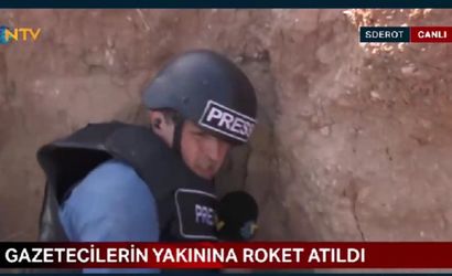 NTV Muhabiri Osman Terkan ve Kameraman Cüneyt Ali Horozal, İsrail-Filistin çatışmasının merkez üssü olan Gazze’ye yakın bir noktada bulunan Sderot kentinde canlı yayına bağlandı. Ancak canlı yayın sırasında Gazze’den atılan bir roket, ekibin yakınına düştü.