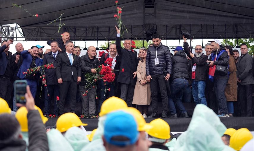 TÜRK-İŞ, 1 Mayıs Emek ve Dayanışma Günü'nü Kartal Meydanı'nda kutladı. TÜRK-İŞ Genel Başkanı Ergün Atalay'ın (sağda) konuşma yaptığı programa CHP Genel Başkanı Özgür Özel de (solda) katıldı.