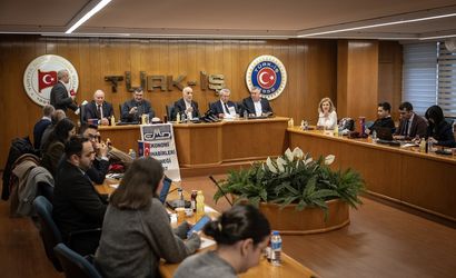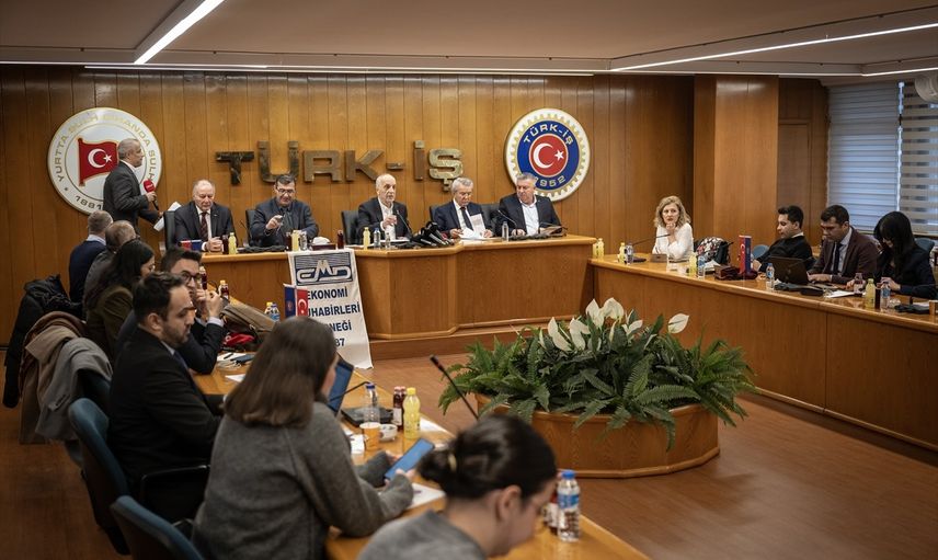 TÜRK-İŞ Genel Başkanı Ergün Atalay, Ekonomi Muhabirleri Derneği (EMD) tarafından TÜRK-İŞ Genel Merkezi'nde düzenlenen basın toplantısında, EMD Başkanı Mehmet Kaya moderatörlüğünde basın mensuplarını sorularını yanıtladı.