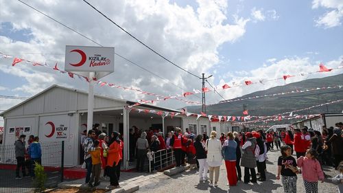Türk Kızılay, Kahramanmaraş depremlerinden etkilenen Nurdağı'nda 100. Yıl Kütüphanesi'ni hizmete açtı.