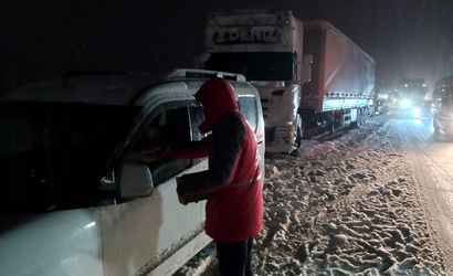 Türk Kızılay ekipleri, kar yağışı ve kazalar nedeniyle ulaşımın aksadığı Samsun-Ankara kara yolunda mahsur kalanlara ikramlarda bulundu.