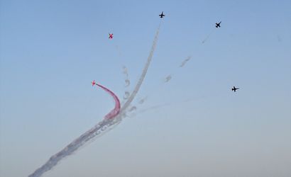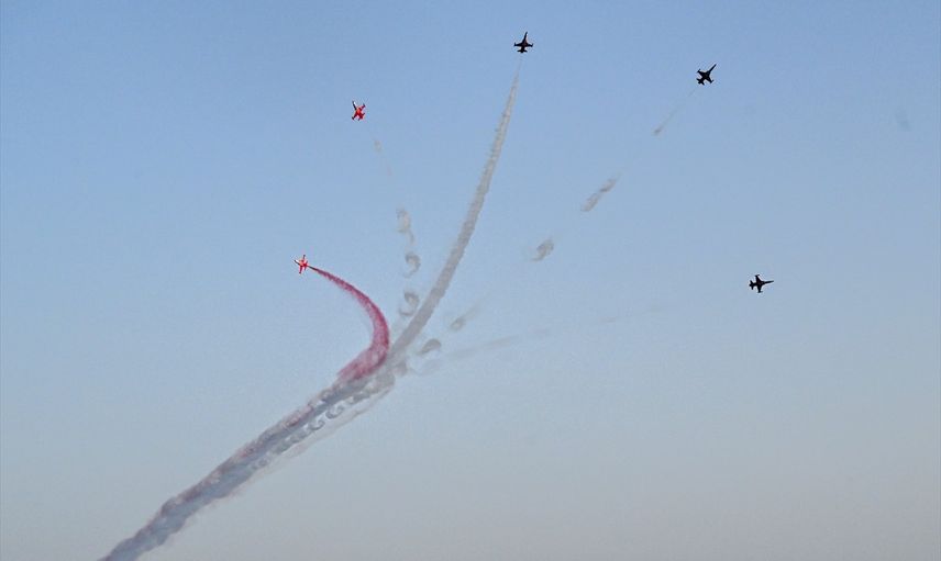 Antalya Havalimanı'ndan kalkan Türk Yıldızları, yaklaşık 35 dakika boyunca Antalya semalarında süpersonik NF-5 tipi 5 savaş uçağı ile akrobasi gösterisi yaptı. Gösteri boyunca geniş güvenlik önlemleri alındı.