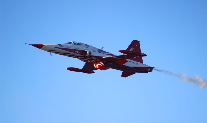 Türk Hava Kuvvetlerinin akrobasi timi Türk Yıldızları, Balıkesir'in Bandırma ilçesinde gösteri uçuşu gerçekleştirdi.