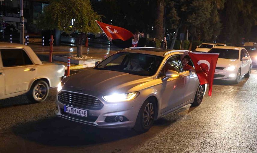 Aydın'da çok sayıda vatandaş araçlarıyla şehir merkezinde konvoy düzenledi; katılımcılar ellerinde Türk bayrakları taşıdı. Bir grup ise Aydın Atatürk Kent Meydanı'nda müzik eşliğinde bir araya gelerek kutlama yaptı.
