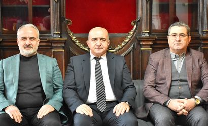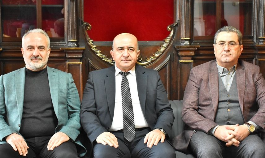 Türkiye Karate Federasyonu Başkanı Ercüment Taşdemir (ortada), Trabzon Gazeteciler Cemiyeti'nde yarın başlayacak Türkiye Büyükler Karate Şampiyonası öncesinde basın toplantısı düzenledi.