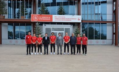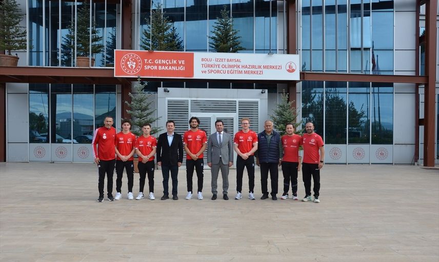 Türkiye Cimnastik Federasyonu Başkanı Suat Çelen (sol 2), Endonezya'da düzenlenecek 53. Artistik Cimnastik Dünya Şampiyonası için Bolu'da kamp yapan milli sporcuları ziyaret etti.