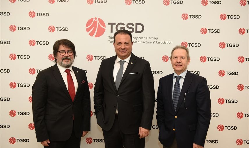Türkiye Giyim Sanayicileri Derneği (TGSD) müşterek başkanları Ümit Özüren (solda) ve Toygar Narbay (ortada) ile TGSD Ekonomi Danışmanı Can Fuat Gürlesel'in de (sağda) katılımıyla düzenlenen basın toplantısında sektördeki duruma ilişkin bilgi verilirken sektörün büyümesi ve dönüşümü için öneri ve talepler paylaşıldı.