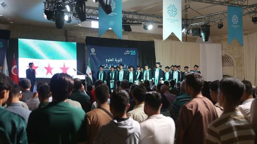Türkiye Maarif Vakfı, Halep'te Çobanbey ve Azez liselerinden mezun öğrenciler için tören düzenledi; öğrenciler Türkiye ve Suriye'deki üniversitelere yerleşti.