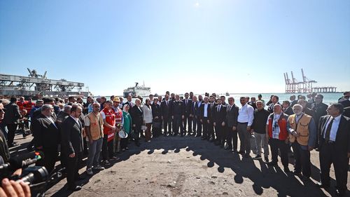 Türkiye'nin 17. 'İyilik Gemisi' Mersin Limanı'ndan Gazze'ye uğurlandı