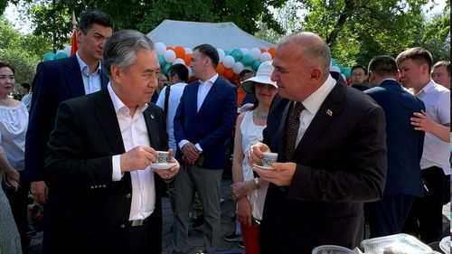 Türkiye'nin Bişkek Büyükelçiliği, Kırgızistan'da Türk Mutfağını TanıttıKırgızistan Dışişleri Bakanlığı, başkent Bişkek’te yetim çocuklar için açık hava kermesi düzenledi. Bu etkinliğe, çeşitli ülkelerin diplomatik misyonları ve uluslararası kuruluşlar katıldı.Türkiye'nin Bişkek Büyükelçiliği de kermeste özel bir stant kurarak Türk mutfağını ve kültürünü…