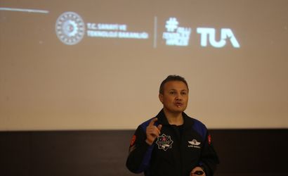 Türkiye'nin ilk astronotu Alper Gezeravcı, Çanakkale Ticaret ve Sanayi Odası Konferans Salonu'nda öğrencilere, Türkiye Milli Uzay Programı ve insanlı ilk uzay misyonunu anlattı.