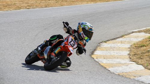 Türkiye Süpermoto Şampiyonası'nın 3. ayağı Uşak'ta yapıldı; 1370 metre uzunluğundaki parkurda 40 sporcu mücadele etti, kategorilerde dereceye girenlere ödülleri verildi.