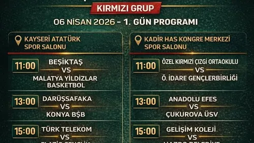 Türkiye U16 Erkekler Anadolu Şampiyonası — Kırmızı Grup Kayseri Etabı Türkiye U16 Erkekler Anadolu Şampiyonası'nın Kırmızı Grup karşılaşmaları 06-10 Nisan tarihlerinde Kayseri'de düzenlenecek. Turnuvanın bu ayağı, şehirdeki iki salonu kullanarak kısa süreli yoğun bir maç takvimiyle oynanacak. Turnuva merkezleri ve…